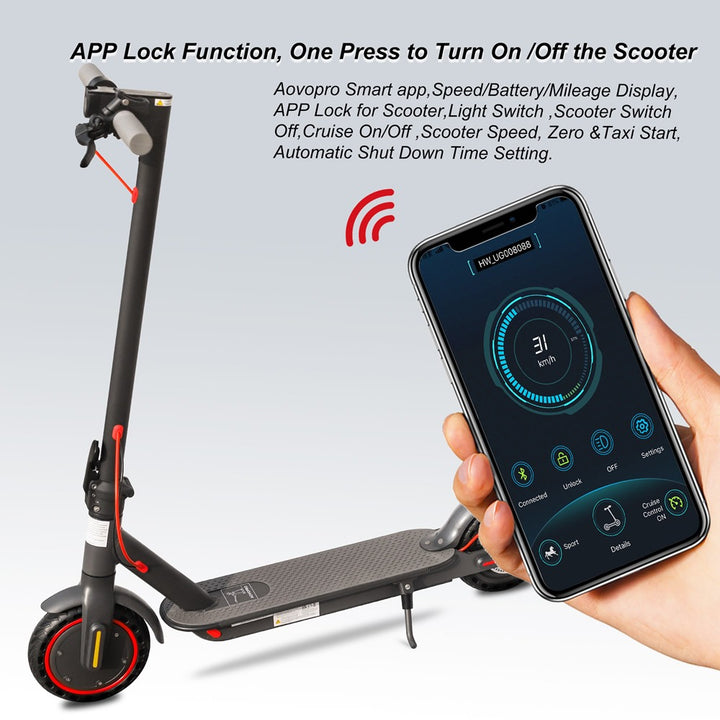 AOVOPR0 Electric Scooter ES80 Long Range High Speed Foldable Electric Scooter/Trottinette électrique , LCD display, 350W, 30-35KM(20 miles) range, Default max Speed: 25KM/h(15.5mph), waterproof, APP control, Foldable design, Front & Rear light.