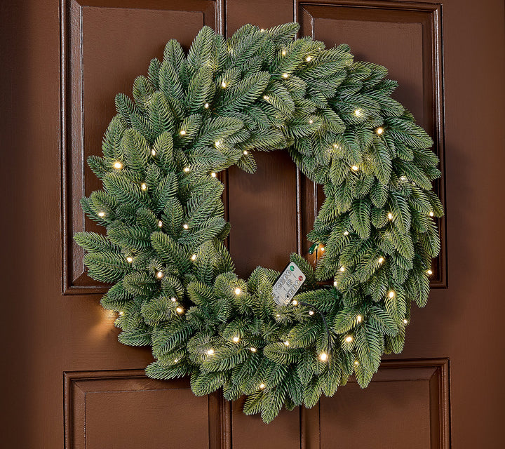 - Includes lifelike pine wreath and remote with battery