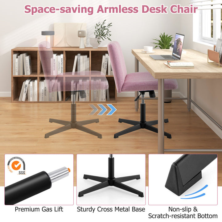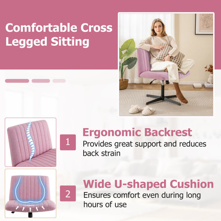 ● Cozy Cross Legged Sitting: The armless desk chair is designed with a wide U-shaped cushion for comfortable cross legged sitting. Additionally, its ergonomic backrest provides great support and reduces back strain.